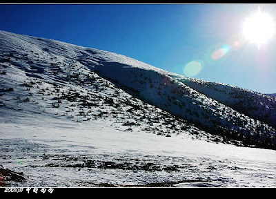 驶入白马雪山,便看出了头一天降雪的直接影响,阴凉处依然覆盖着薄薄的雪层,有些地方已经开始结冰。格桑开的很小心,东绕西绕,终于来到了海拔4292米的白马雪山垭口。车门一开,我们几个就跑到雪地上打滚去了。