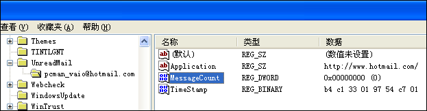 HKEY_CURRENT_USER\Software\Microsoft\Windows\CurrentVersion\UnreadMail