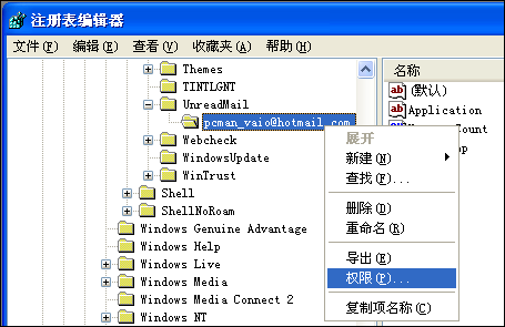 在这个字段下,会列出当前和WindowsXP登录程序相互关联的邮箱